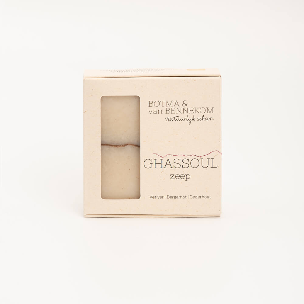 Ontdek de pure kracht van Botma & Van Bennekom Ghassoul zeep. Deze handgemaakte, natuurlijke zeep is verrijkt met Ghassoul klei, een bijzondere kleisoort uit Marokko die bekendstaat om zijn zachte maar grondige reiniging. De zeep is perfect voor zowel je gezicht als lichaam en zelfs geschikt als milde shampoo voor je haar.