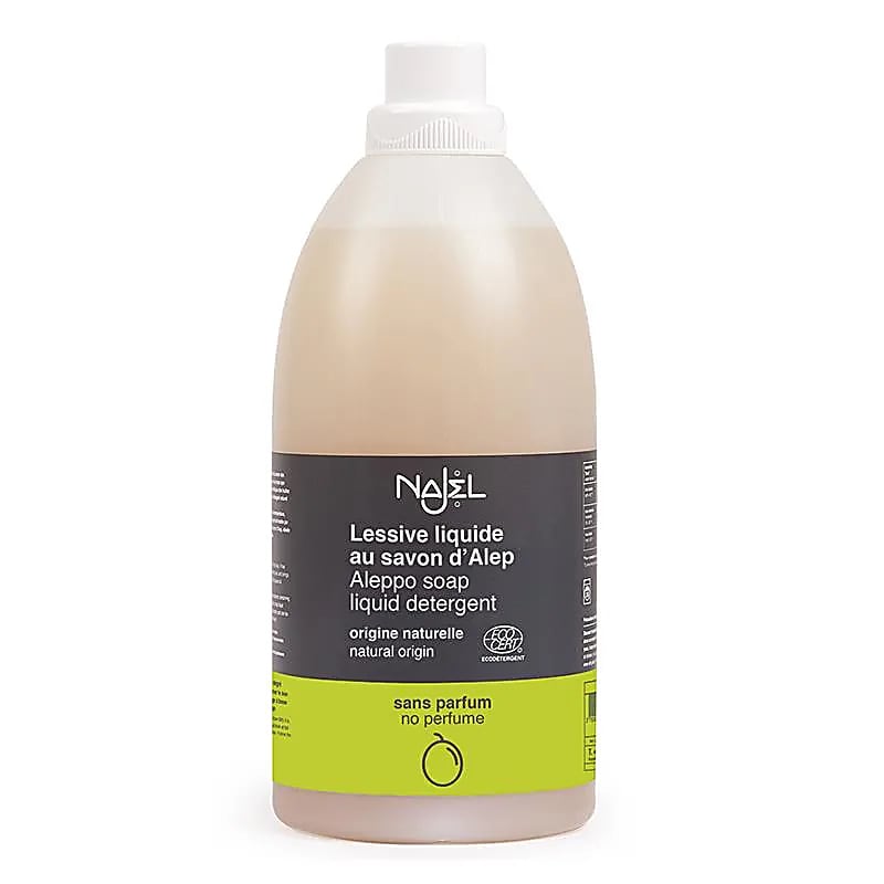 Najel Aleppo Wasmiddel ongeparfumeerd natuurlijk vloeibaar wasmiddel met olijfolie, laurierolie. Doeltreffend bij alle temperaturen. Geschikt voor alle soorten wasgoed, zowel wit als gekleurd. Probeer het en u zult er dol op zijn! Het wasmiddel op basis van Aleppozeep van Najel. Waarom een wasmiddel op basis van Aleppozeep gebruiken?