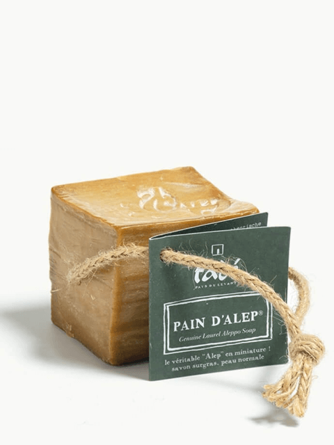 Ontdek de puurheid en veelzijdigheid van de Tadé Aleppo blokzeep aan Touw een authentiek product dat zijn oorsprong vindt in de eeuwenoude traditie van Aleppo, Syrië. Deze ambachtelijke zeep wordt met zorg vervaardigd met hoogwaardige natuurlijke ingrediënten, waardoor het een uitstekende keuze is voor zowel huidverzorging als het huishouden.